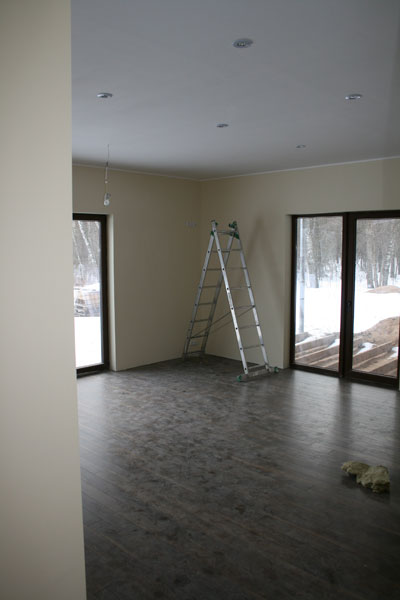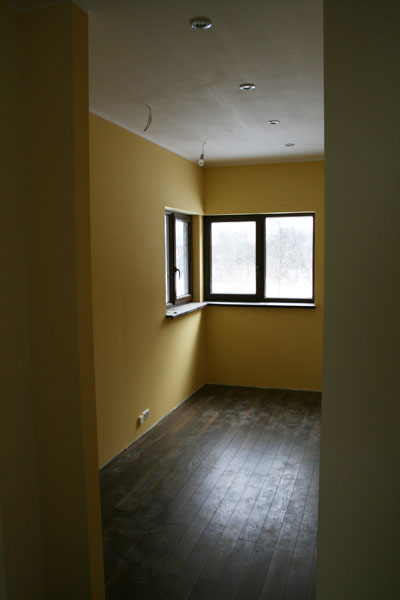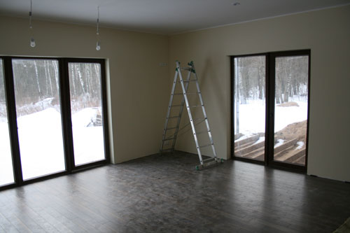 Sienos, lubos nudažytos, grindys sudėtos. Vanduo yra, šiluma taip pat. Beveik valio :) Planuojamas įsikėlimas po 3 mėn. atostogų (pavadinkime tai taip). Kai tai įvyks tikrai parašysiu ir pasigirsiu.